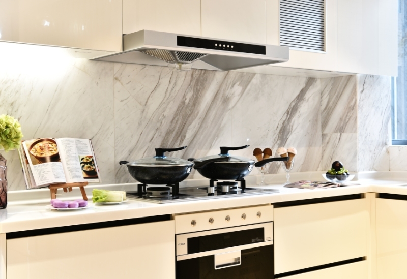 厨房设备没必要一定要选国外品牌,国内的厨具及磁砖也非常不错,价格相对会便宜不少。厨房台面也没必要用大理石,普通的人造石价格便宜,使用起来也差不到哪里去。